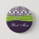 This purple and white damask with faux lime green ribbon and jewels Best Man button matches the wedding invitation show below. The text is customisable and so is the shape and size of the button. If you need anything changed, please email niteowlstudio@gmail.com.
