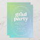 Modern graduation party invites featuring a unique geometric frame with a lime green, turquoise, and blue gradient background. "Grad Party" is displayed in bold white lettering with the graduate's name and party details shown below. The trendy graduation party invites are perfect for both high school and college graduates.