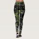 Lime and white on black leggings with random pattern of lime and white intersecting lines that have a splotchy paint stroke look on a customisable black background - by katz_d_zynes