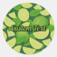 Lime slices and leaves. Seamless pattern. Custom background colour. Custom text.
