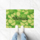 Lime slices and leaves. Seamless pattern. Custom background colour. Custom text.