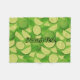 Lime slices and leaves. Seamless pattern. Custom background colour. Custom text.