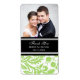 Elegant Wedding thank you custom photo template labels in stylish bright apple green, black and white with classic and romantic floral vintage damask pattern, the perfect addition to your wedding, available in a wide selection of matching wedding products. Perfect for wedding favours or wedding wine bottle labels.