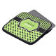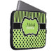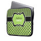 This personalised lime green, black, and white polka dots and stripes laptop sleeve has text boxes for you to customise with your own name, initials, business name, or other text. If you need any help customising, please email niteowlstudio@gmail.com.