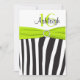 Lime, Black, White Zebra 16th Birthday Invitation