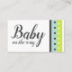 In this bright, modern design, I've paired a modern script font with an all-caps, sans-serif typeface for a fresh, pretty look. On opposite ends of each side I've added bright striped and dotted accent graphics. The palette in the bold imagery includes lime green, robin's egg blue, dark grey and white. On the front is a place holder template field for mum's name and details about the gift registry store. On the back, "Baby on the way!" was rendered in two parts - one considerably larger - and placed in the centre of the white space. The type is rendered in coordinating dark grey and you may use different fonts, if you'd like to play with the Zazzle editing tools and update this design to suit your needs. Please let me know if you need help with customising or if you have special requests. // Designed by Melody Watson for Paper Muserie.