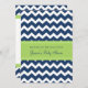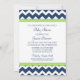 Personalised baby shower invitations in elegant and modern dark navy blue, bright apple green and white fun chevron zigzags pattern. Customisable with your text, contact us to request a colour change.