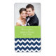 Elegant Wedding thank you custom photo template labels in stylish bright lime green, dark navy blue and white with casual and retro chevrons zigzags vintage pattern, the perfect addition to your wedding, available in a wide selection of matching wedding products. Perfect for wedding favours or wedding wine bottle labels.