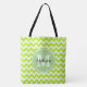 Lime Chevron, Custom Monogram Personalised Name Tote Bag