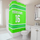 Preppy Sporty Emerald Green and White Stripes Team Jersey / Sports Jersey / Football Jersey with Custom Name, Custom Number on a Solid Colour Background