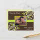 Add your own photo to our custom Save the Date postcards with an elegant brown and green floral swirl design. Easy to use template - just add your photo, and enter the names of the Bride & Groom, along with the wedding date in the space provided.