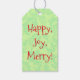 My original artwork is featured on this cute Christmas Holiday tag, consisting of my design of a vintage pattern re-created into a lime green colour tone. The front of the tag states "Happy, Joy, Merry" in a fun font style. The back of the tag is in a complementary light green tone for your writing ease and pleasure. This set of 10 gift tags is printed on heavy-weight paper, and each tag is 3.5 inches by 2 inches. The tag has grey twine with it, but you may change that colour as you please. This fun tag will make your gifts stand out.
