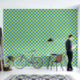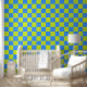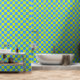 My original artwork is featured on this fun wallpaper, consisting of a chequerboard pattern in lime green and turquoise dominating the basic pattern. The size of this one is 2 feet x 8 feet, but you can choose other size options. This peel and stick wallpaper is in textured vinyl or you can choose smooth vinyl as well.