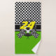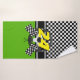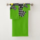 Lime Green, Black and White Chequered Racing 🏎 Bath Towel Set