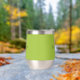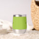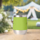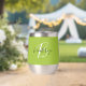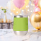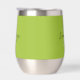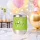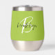 This personalised thermal wine tumbler features a monogram and first name in modern black and white script on a trendy lime green background.