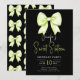 Lime Green Bow Coquette Script Sweet 16 Black Invitation