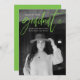 Modern graduation announcement card featuring your graduate's favourite photo on the front with "Graduate" in a lime green handwritten script. Personalise the front of the announcement by adding the graduate's name, school name, and graduation year. The trendy graduation announcement reverses to display an additional 3 photos with space for text such as future plans, graduation details, party details, etc. The 4 photo graduation announcement is perfect for both high school and college graduates.