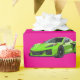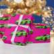 Wrapping paper with Bright Lime Green coloured C8 Corvettes (2020 - Current). Pink Background