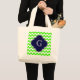 Lime Green Chevron Navy Blue Quatrefoil Monogram Large Tote Bag