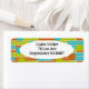These return address labels have a mid-century modern design of repeating rectangles in lime green, cinnamon brown, and turquoise with circles layered on top.