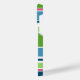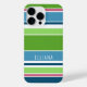 Contemporary light lime green, aqua blue, bright summer pink and white coloured striped stripes pattern cell phone case. With room to customise with a name, monogram, or initials of your choice. Beautiful, modern, and cool cover for the trend-savvy and art-loving hip trendsetter, artsy motif lover who wants to protect their phone from dust and dirt, wear and tear. This design is available in Apple iPhone 6, 7, and 8 Plus, 10 or X, XR, XS, 11, 12, 13 Mini, 14, 15 Plus, and Pro Max cellphone cases. Show off your style, look fashionable trendy, and feel stylish with a unique design on a mobile device accessory of your choice.