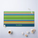 Contemporary light lime green, aqua blue, bright summer pink and yellow coloured striped stripes pattern design. With room to customise with name, monogram or initials of your choice. Beautiful, modern and cool keyboard desk pad for the trend-savvy and art-loving hip trendsetter, vintage retro look style motif lover.