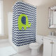 Lime Green Elephant on Navy and White Chevron Shower Curtain