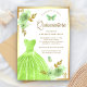 Lime Green Floral Dress Butterfly Gold Quinceanera Invitation