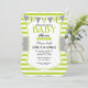 Lime Green Grey Stripes Baby Shower Invitation