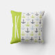 Lime Green, Light Blue, Navy, Nautical Anchors Cushion