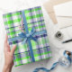 Lime Green, Navy Blue, White Preppy Madras Plaid Wrapping Paper