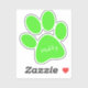 Lime Green Paw Print Design Custom Cut Contour Sticker with customisable text in various sizes