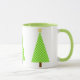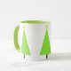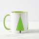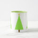 Mug in a simplified modern take on a classic Christmas tree motif coffee mug, lime green polka dots