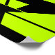 Crop to standard frame sizes or your own personal preference (available in small to large sizes of various proportions and different paper types). Featured is an abstract design composed of bold, fluorescent lime green shapes on a black background, reminiscent of the Mid-Century Modern style. A dynamic, contemporary look for your home or workspace.
