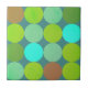 Modern circle pattern with lime greens, Turquoise and rust colours on teal.
