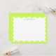 Modern note card featuring a bold lime green wavy frame paired with clean cobalt blue text. Fresh, playful color contrast gives this design a contemporary yet slightly retro feel, perfect for thank you notes, personal messages, or stylish business stationery.