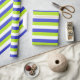 Lime Green, White and Blue Stripes Wrapping Paper