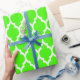 Lime Green White XL Moroccan Quatrefoil #4 Wrapping Paper