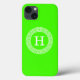 Lime Green Wt Greek Key Rnd Frame Initial Monogram Case-Mate iPhone Case