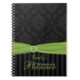 This personalised grey and black damask with stripes wedding planner notebook has a lime green PRINTED ribbon and a PRINTED diamond jewels buckle on it, and customisable text that you can change to suit your needs.Email niteowlstudio@gmail.com if you need assistance.