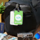 A bright lime and turquoise pattern decorates this fun luggage tag. Customise this luggage tag by changing the text to suit your needs. The design is from original art.