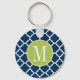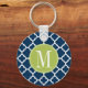 Lime & Navy Geometric Pattern Custom Monogram Key Ring