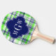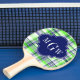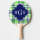 Lime, Navy, Wht Preppy Madras Quatrefoil Monogram Ping Pong Paddle