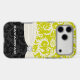 Elegant Personalised with your name or anything you like - shown on a Lime and off white and Black iphone Vintage Damask Elegant case - Faux Diamond - Printed Image - not an attached rhinestone - this is a printed rhinestone - the lime can be changed to any colour by clicking customise and then edit. Use the last tool on the drop down menu to choose from the colour swatches shown or enter your RGB Hex code for a custom colour and a one of a kind case.