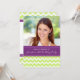 Custom Photo 20th Birthday party invitations in elegant and pretty chartreuse lime green, dark purple and white fun and modern chevron zigzags pattern. Add your name, photo, and party details for a unique and stylish 20th birthday party invitation.