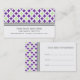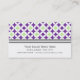 Salon, event planner or spa appointment business cards in elegant and casual circles and diamonds bold geometric pattern in bright purple, lime green, grey and white. Customisable with your contact details, stylish and contemporary. Contact us for a custom colour.