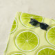 A pattern of fresh & juicy lime slices in bright, vivid shades of lime green, with a watercolour texture to give it that freshly cut look. They are placed on a light yellow / green background for a bright & summery look.