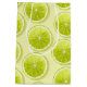A pattern of fresh & juicy lime slices in bright, vivid shades of lime green, with a watercolour texture to give it that freshly cut look. They are placed on a light yellow / green background for a bright & summery look.