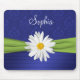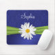 This elegant looking royal blue, white, and lime green damask mousepad has a faux ribbon and shasta daisy. Customize it with your own name, monogram, or other text.