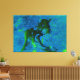 The blue and green, original, abstract artwork by ZoeSPEAK on this Stretched Canvas Print was made from Zoe’s original photograph of white limestone, in a sandbar at Anne’s Beach in the Florida Keys. The dark and lime green shape almost looks like an animal romping in aqua blue water.